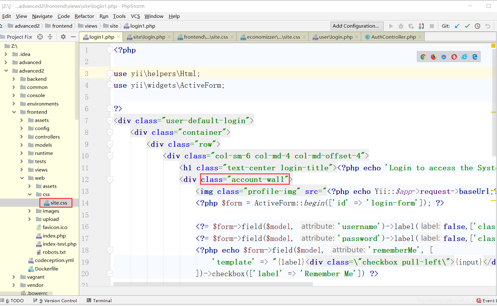引用的地方是:SiteController 下的一个视图文件 login.php